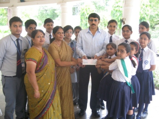 A Group of selected students along with the Principal and Headmistress met the District Magistrate, Mr.Rajeev Rautela on 8th of July 2013 and handed him over the Demand Draft of Rs 25000/-to be forwarded to the Office of the Chief Minister, State of Uttarakhand in Dehradun. The students generously contributed and came forward to send aid to the victims of the recent natural disaster in Uttarakhand. |